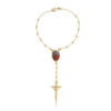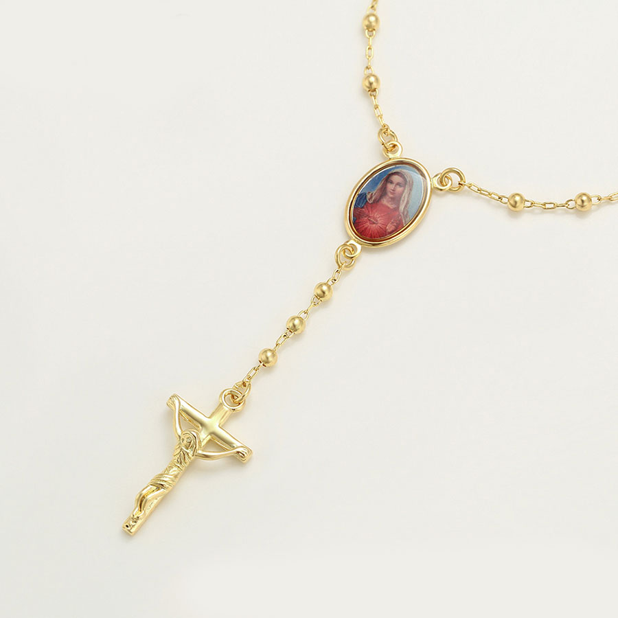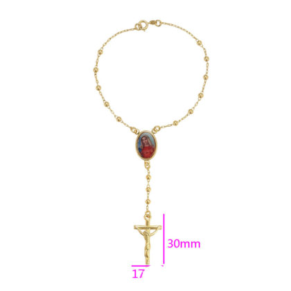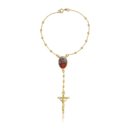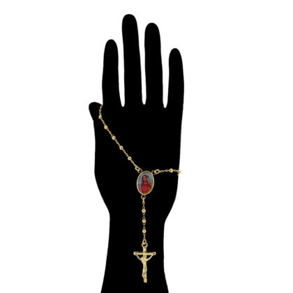 Materialul folosit este aliajul placat aur , care oferă o nuanță caldă și distinctivă. Fiecare mărgeluță și detaliu este confecționat cu migală pentru a crea o experiență vizuală și tactilă remarcabilă.  În centrul brățării, se găsește o medalie distinctivă, care poate reprezenta o figură religioasă sau un simbol specific religiei respective. Această medalie adaugă o notă de individualitate și semnificație personală brățării, transformând-o într-o expresie autentică a credinței și a stilului personal.