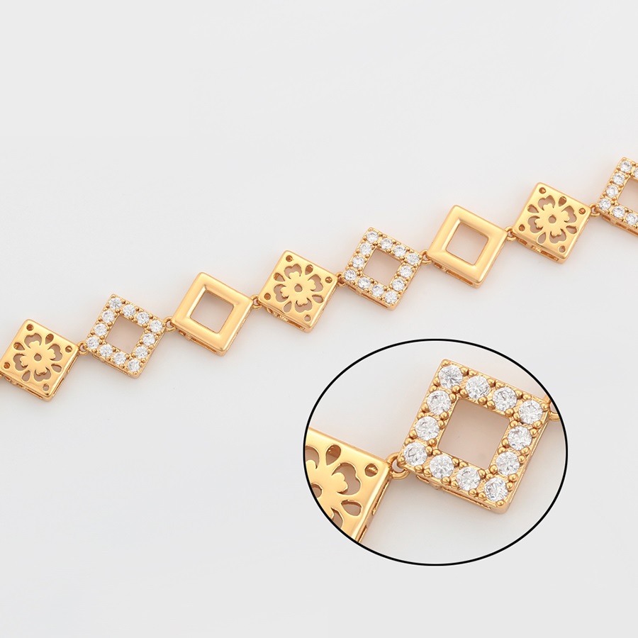 Bratara placata aur model romb emană rafinament și stil, fiind o alegere versatilă și elegantă pentru oricine dorește să adauge un strop de strălucire în ținutele lor. Cu un design simplu și sofisticat, această brățară este potrivită pentru toate genurile și poate fi purtată cu încredere în orice ocazie.
