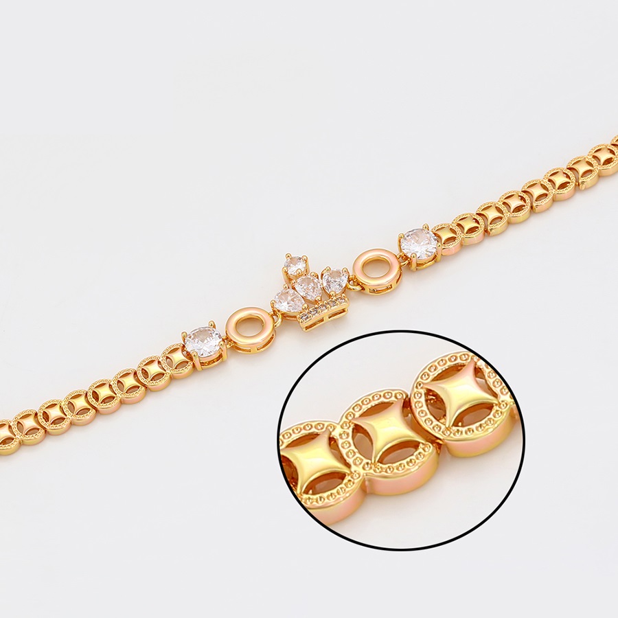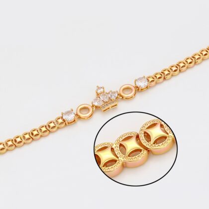 Bratara placata aur model fundite este o bijuterie elegantă și rafinată, potrivită pentru a fi purtată în orice ocazie specială sau pentru a completa cu stil ținutele de zi cu zi. Aceasta este realizată dintr-un material de bază, care poate fi de obicei alamă sau aliaj de oțel, acoperit cu un strat subțire de aur. Datorită finisajului placat cu aur, brățara capătă un aspect luxos și strălucitor asemănător aurului veritabil.