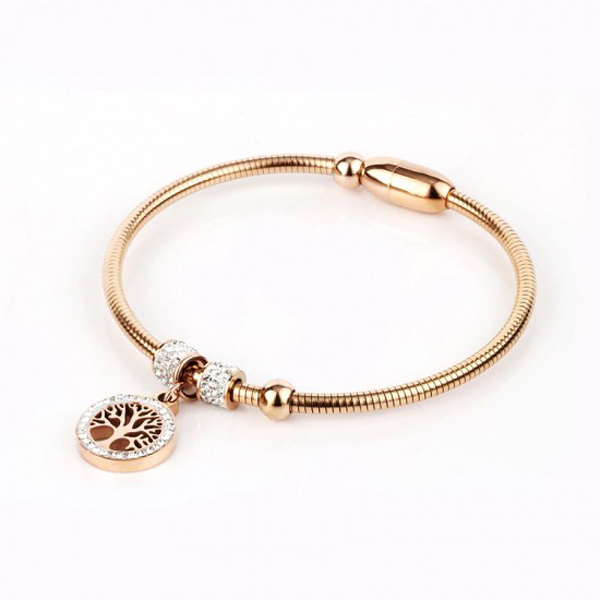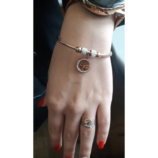 Bratara placată cu aur roze, în formă de copac al vieții și încrustată cu cristale, este o bijuterie care îmbină simbolismul copacului vieții cu strălucirea cristalelor și eleganța placării cu aur. Copacul vieții este un simbol puternic, prezent în multe culturi și tradiții, și este asociat cu viața, fertilitatea, înțelepciunea și conexiunea cu natura.