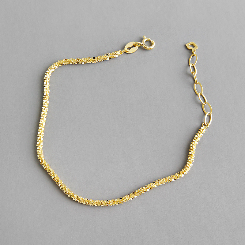Bratara rasucita argint 925 placata aur reprezintă o bijuterie deosebit de elegantă și rafinată, care combină farmecul clasic cu un strop de strălucire aurie. Designul rasucit al brățării adaugă o notă de originalitate și complexitate. Fiecare secțiune a brățării este delicat răsucită, conferind bijuteriei o textură interesantă care atrage privirile.