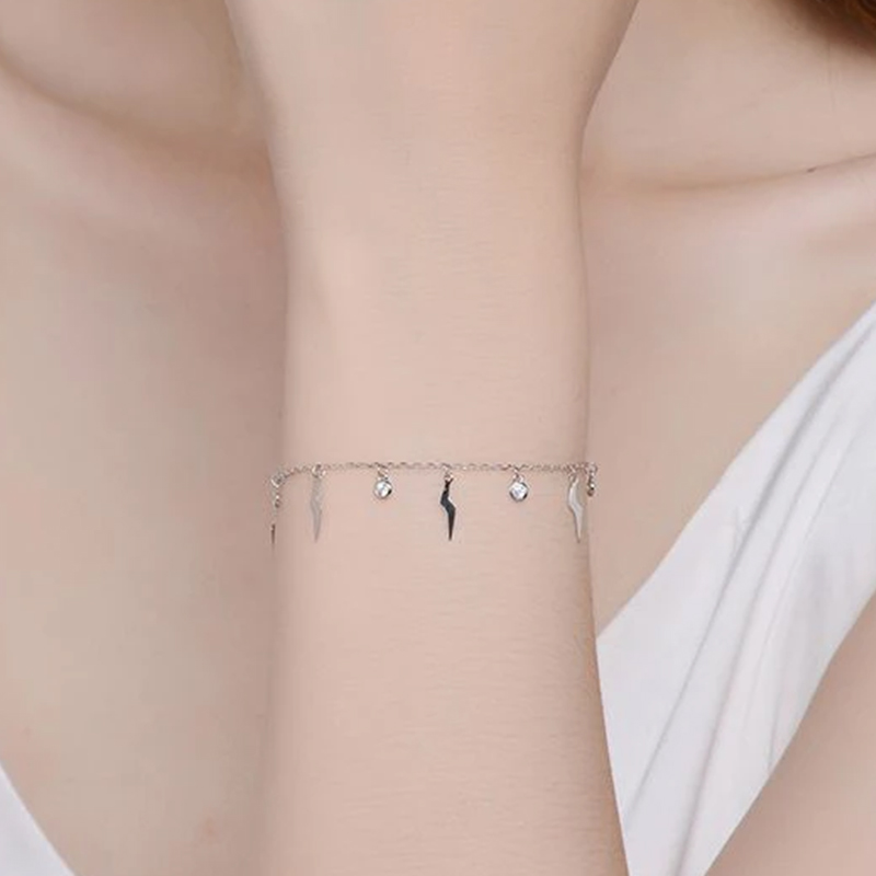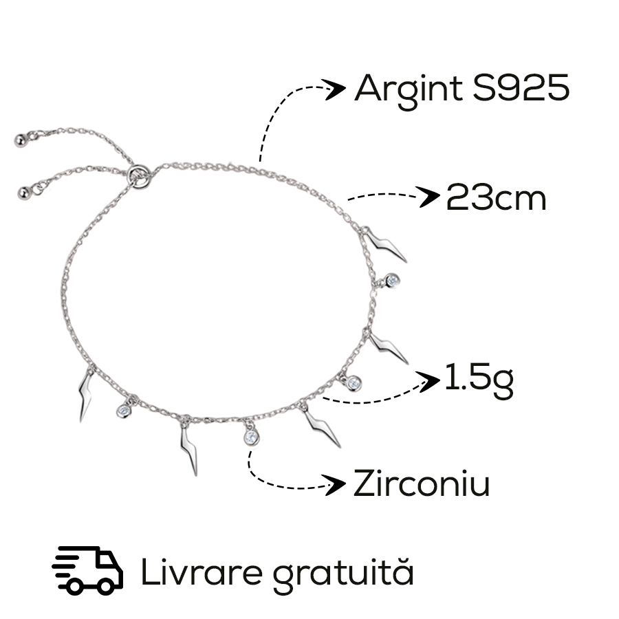 Bratara reglabila din argint 925 cu fulgere emană o notă de dinamism și strălucire subtilă. Cu un design jucaus și plin de energie, această bijuterie adaugă un strop de farmec și vitalitate oricărei ținute.