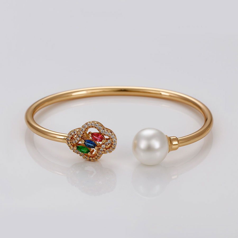 Bratara rigida cu cristale multicolore placata aur este o bijuterie elegantă și rafinată, care îmbină strălucirea aurului cu frumusețea subtilă a perlelor. Această brățară prezintă un design sofisticat și atemporal, fiind potrivită pentru ocazii speciale sau pentru a adăuga un strop de eleganță în viața de zi cu zi.