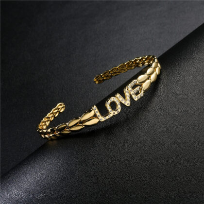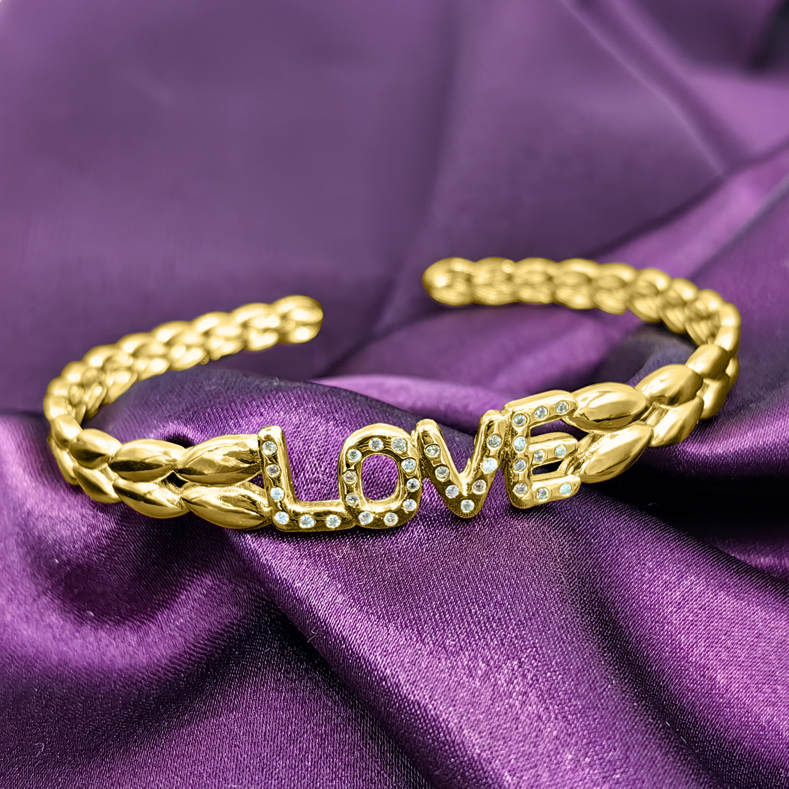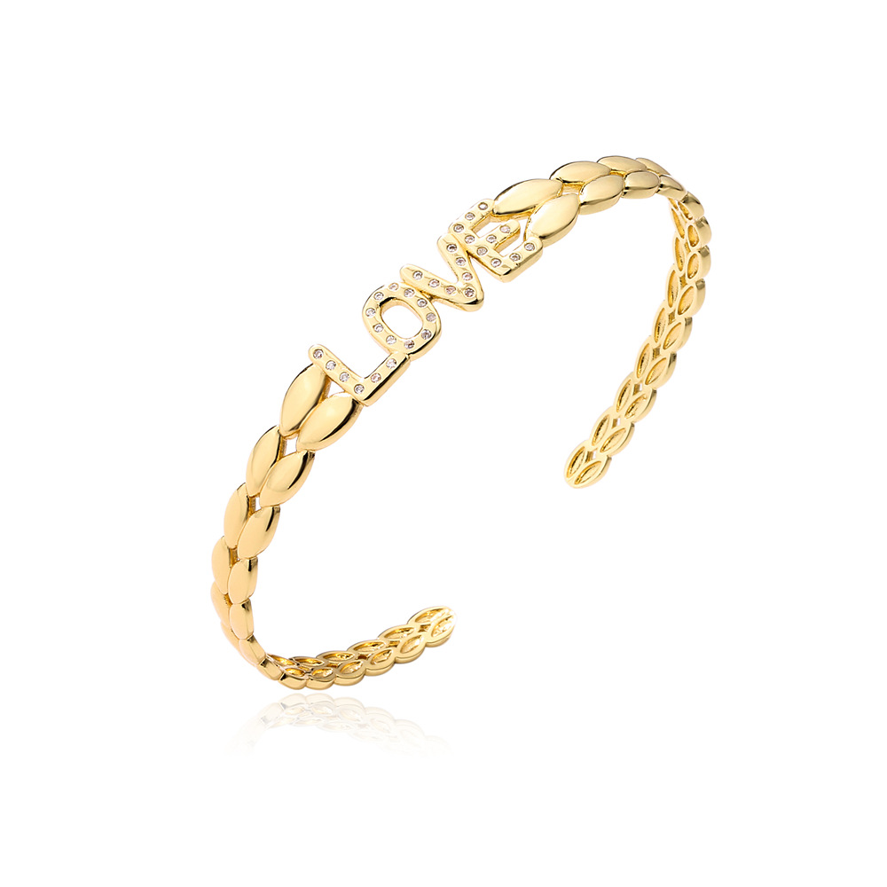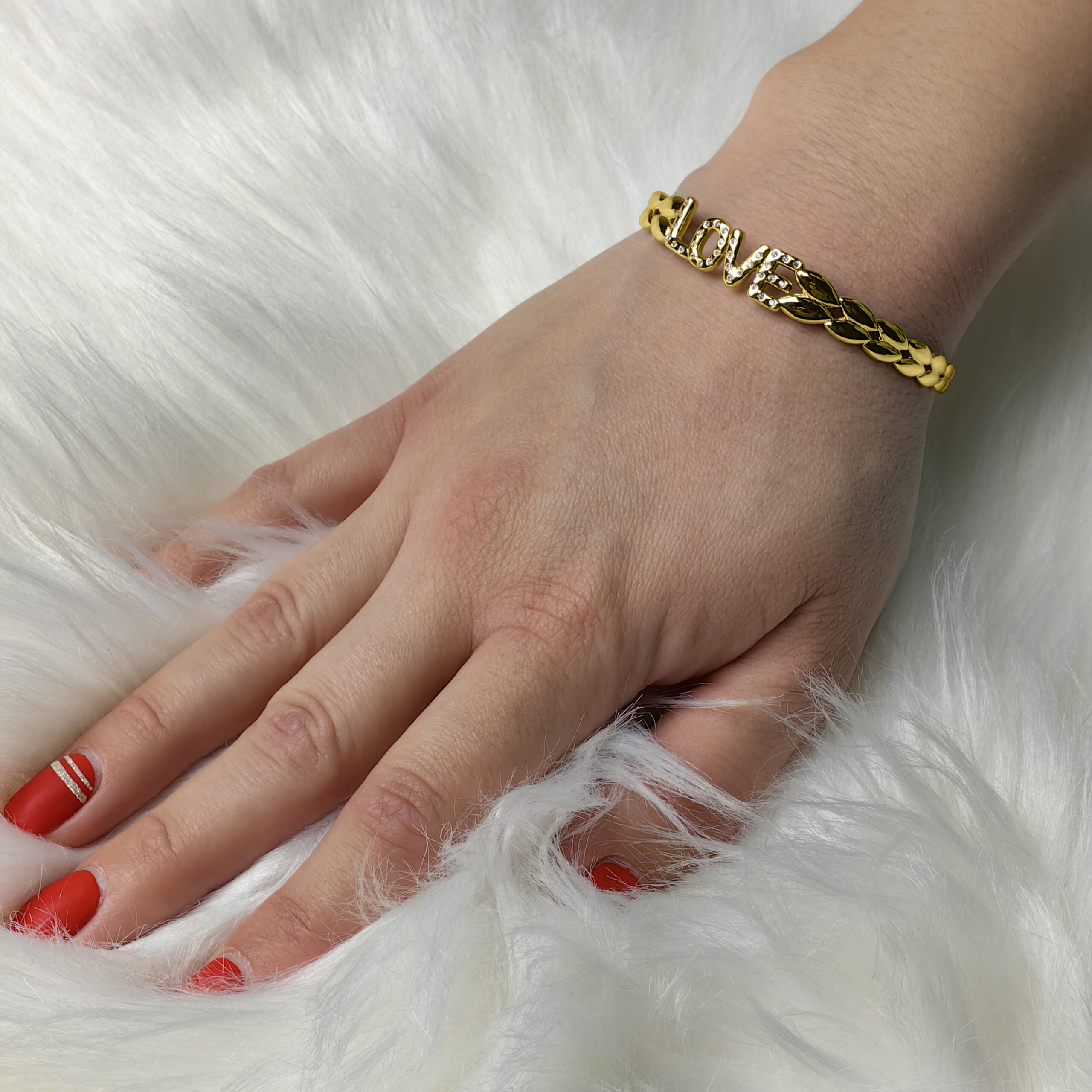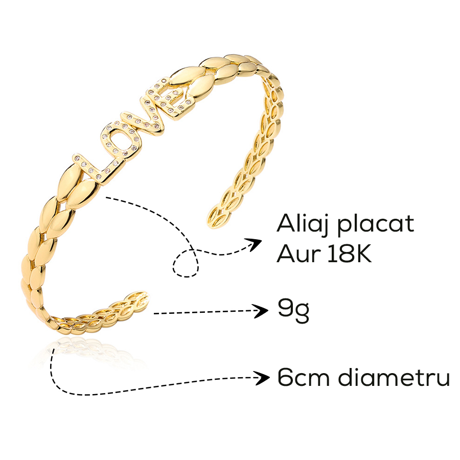 Bratara rigida Love impresionează prin strălucirea sa. Cu un aspect elegant și prețios, această bijuterie adaugă o notă de lux și strălucire oricărei ținute. Forma rigida adaugă stabilitate și stil, astfel încât să se muleze frumos pe încheietura mâinii, oferind o senzație de confort și siguranță. Indiferent că o purtați la ocazii speciale sau pentru a adăuga un plus de eleganță zilnică, această brățară rigida va aduce o notă sofisticată fiecărei ținute.