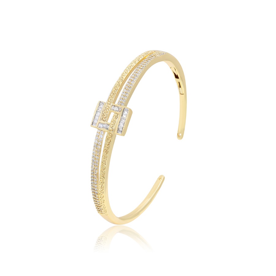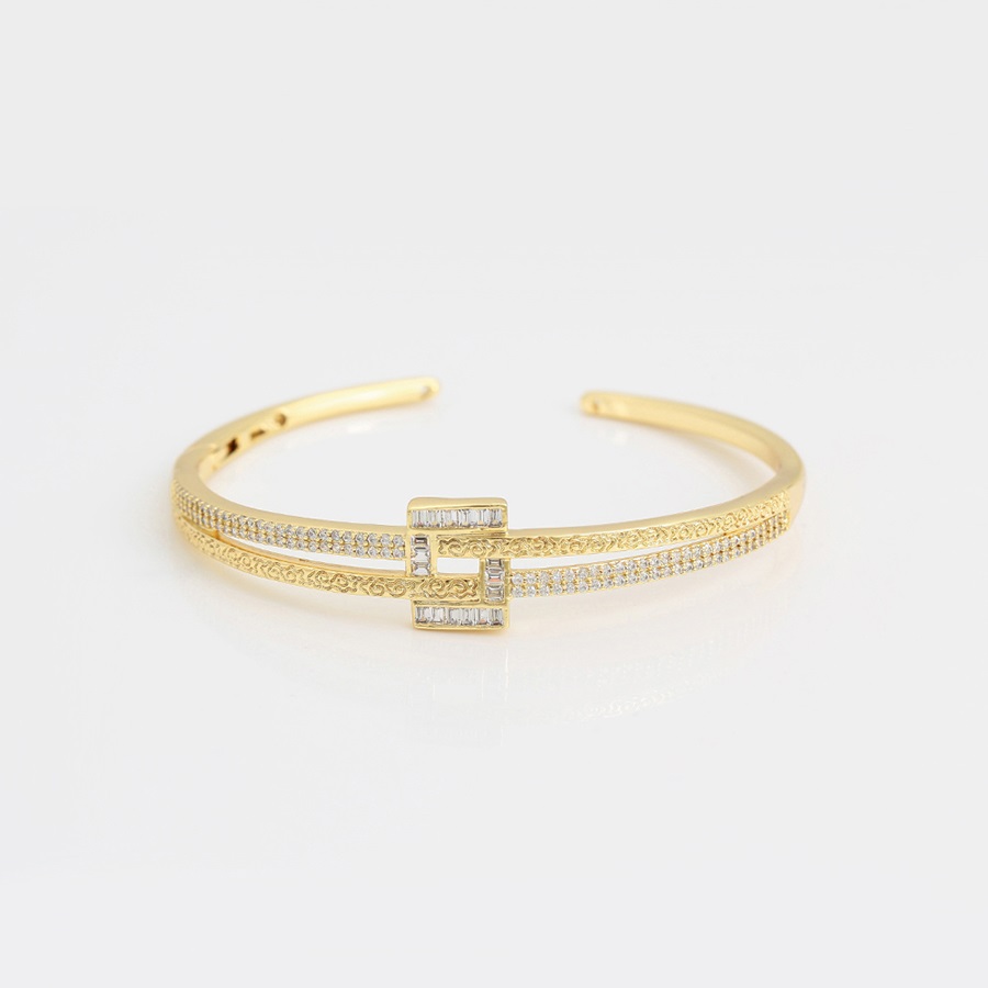 Aceasta este confecționată din metale comune acoperite cu un strat subțire de aur. Placarea cu aur conferă brățării un aspect luxos, similar celui al unei bijuterii din aur masiv. Brățările rigide pot fi purtate atât pe încheietura mâinii cât și pe antebraț și se pot ajusta pentru a se potrivi confortabil pe încheietura ta.
