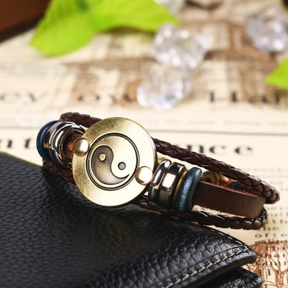 Bratara unisex piele amuleta yin yang este un accesoriu semnificativ și simbolic. Brățara este confecționată din piele , oferind un aspect rustic și autentic.
