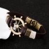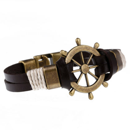 Bratara vintage din piele amuleta cârmă este confecționată din piele naturală oferind un aspect rustic și autentic. Amuleta este fabricată din oțel inoxidabil, pentru a rezista uzurii și pentru a-și păstra strălucirea. Aceasta are forma unei cârme.