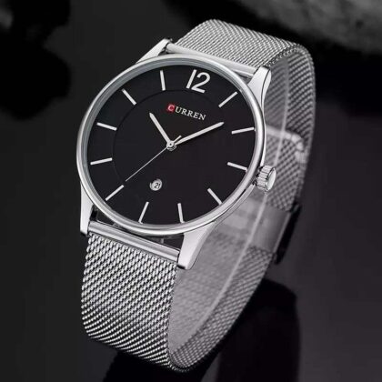 Ceasul de barbati argintiu cadran negru cu data, de la Curren este o alegere perfecta ca accesoriu, datorita designului modern si usor de asortat cu mecanism japonez, quartz. Ceasul iese in evidenta prin bratara metalica din otel inoxidabil si prin cadranul generos cu interior unic pe negru. Ceasul este rezistent la apa.