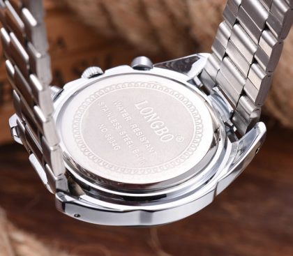 Ceasul de mana pentru barbati, de la Longbo este o alegere perfecta ca accesoriu, datorita designului modern si usor de asortat cu mecanism quartz. Ceasul iese in evidenta prin bratara metalica din otel inoxidabil argintie si prin cadranul generos cu interior unic pe negru si albastru.