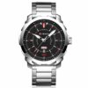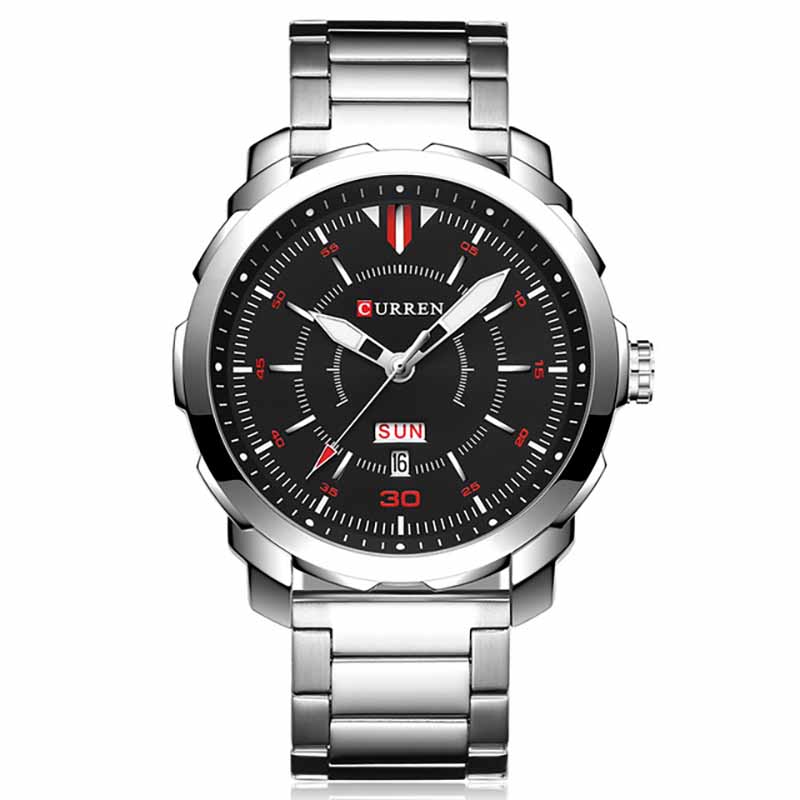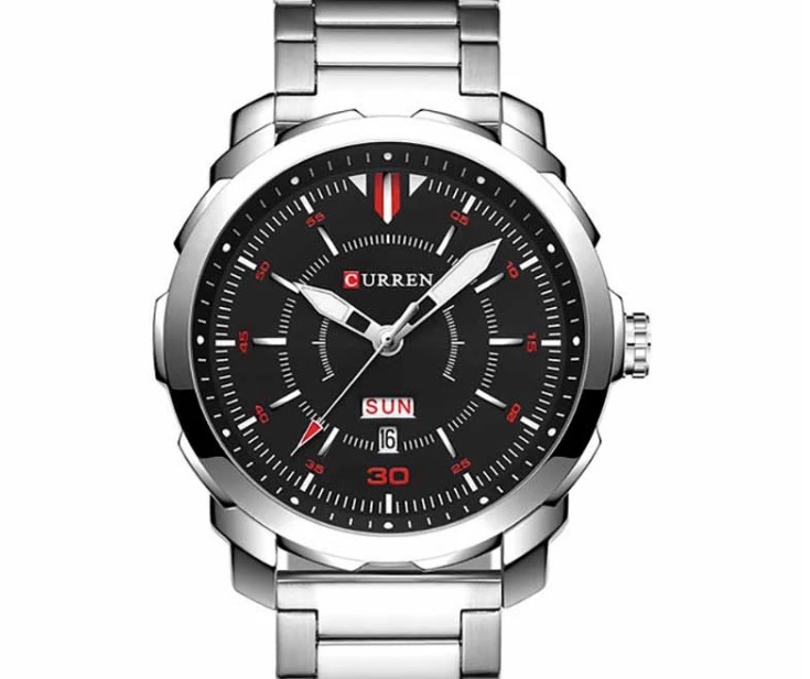 Ceasul de mana cu calendar pentru barbati, de la Curren este o alegere perfecta ca accesoriu, datorita designului modern si usor de asortat cu mecanism japonez de inalta calitate. Ceasul iese in evidenta prin bratara din otel inoxidabil argintie si prin cadranul generos cu interior unic pe negru cu rosu. Produsul are o circumferinta de 24,5cm si diametrul cadranului de 4,7cm.
