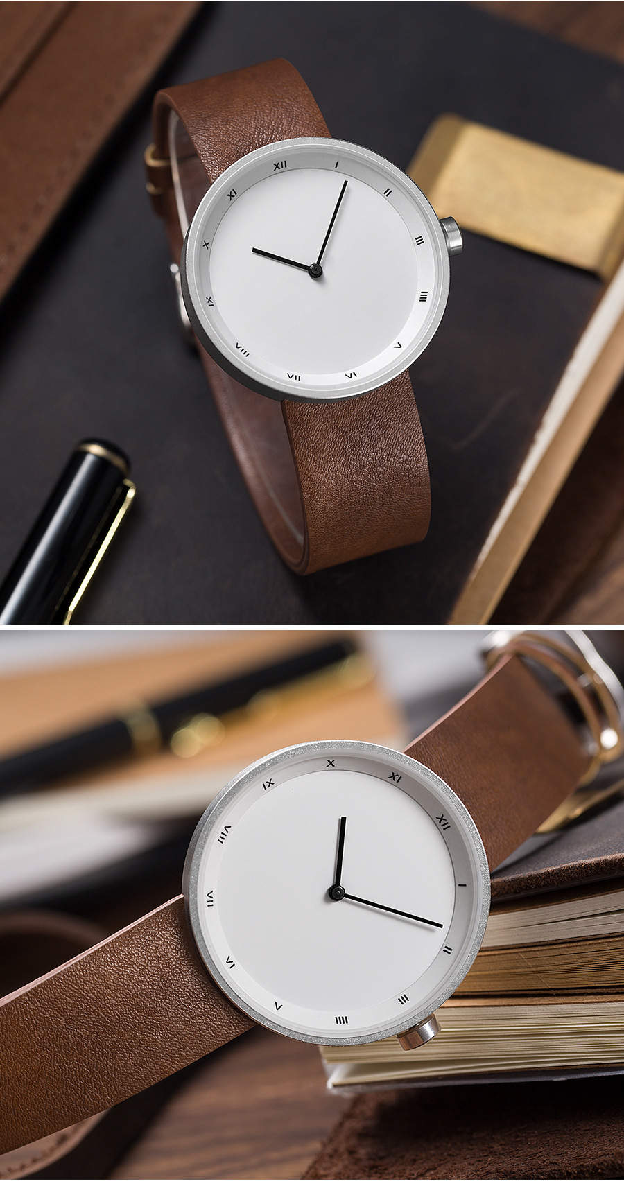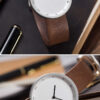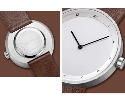 Ceas curea piele maro barbati Yazole