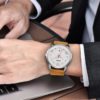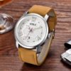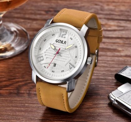 Ceasul de mana de la Genila este o alegere perfecta ca accesoriu pentru tinute office sau casual. Ceasul iese in evidenta prin cureaua din piele maro si prin cadranul argintiu, cu interior alb, cu data si cifre arabe . Modelul modern il face usor de asortat si are mecanism quartz.