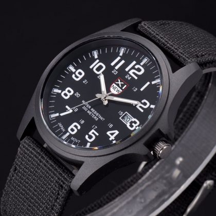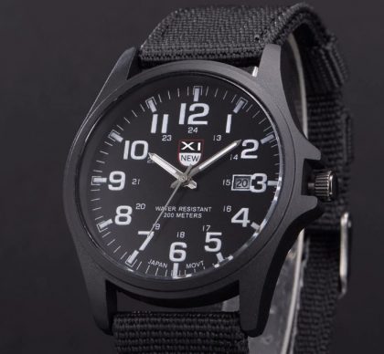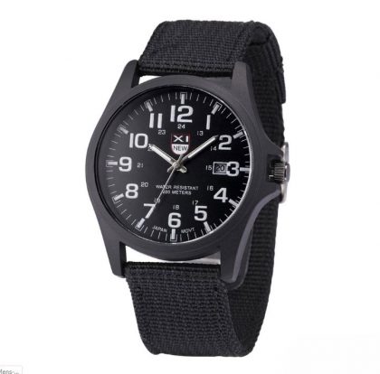 Ceasul de mana sport cu cadran negru si cifre arabe este o alegere perfecta ca accesoriu pentru tinute casual. Ceasul iese in evidenta prin cureaua din material rezistent pe negru si prin cadranul generos. Modelul modern „military” il face usor de asortat si are mecanism quartz.