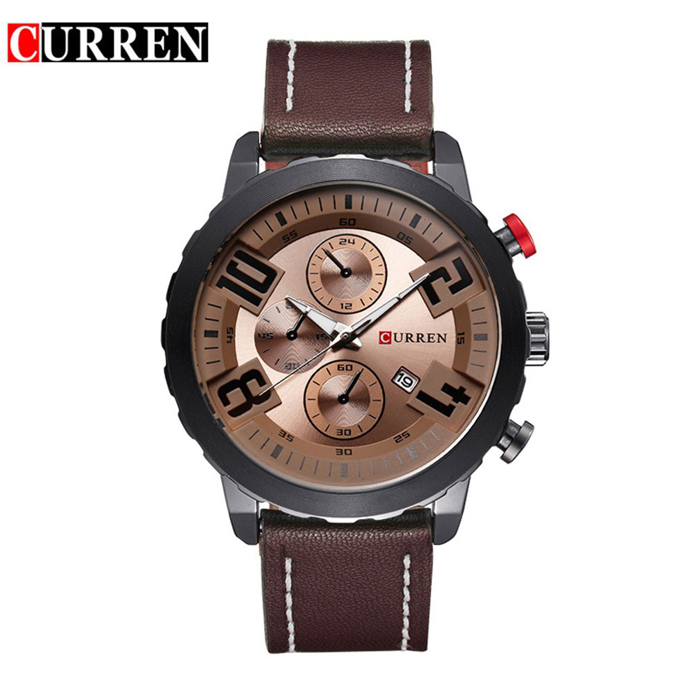 Ceasul de mana military, cu data pentru barbati, de la Curren este o alegere perfecta ca accesoriu, datorita designului modern si usor de asortat cu mecanism japonez de inalta calitate. Ceasul iese in evidenta prin cureaua din piele naturala maro si prin cadranul generos cu interior unic tot pe maro. Produsul are o circumferinta de 24,5cm si diametrul cadranului de 4,7cm.