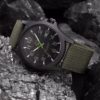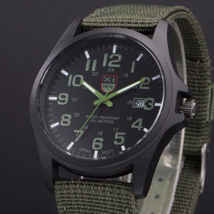 Ceasul de mana sport cu cadran negru si cifre arabe este o alegere perfecta ca accesoriu pentru tinute casual. Ceasul iese in evidenta prin cureaua din material rezistent pe verde si prin cadranul generos. Modelul modern „military” il face usor de asortat si are mecanism quartz.