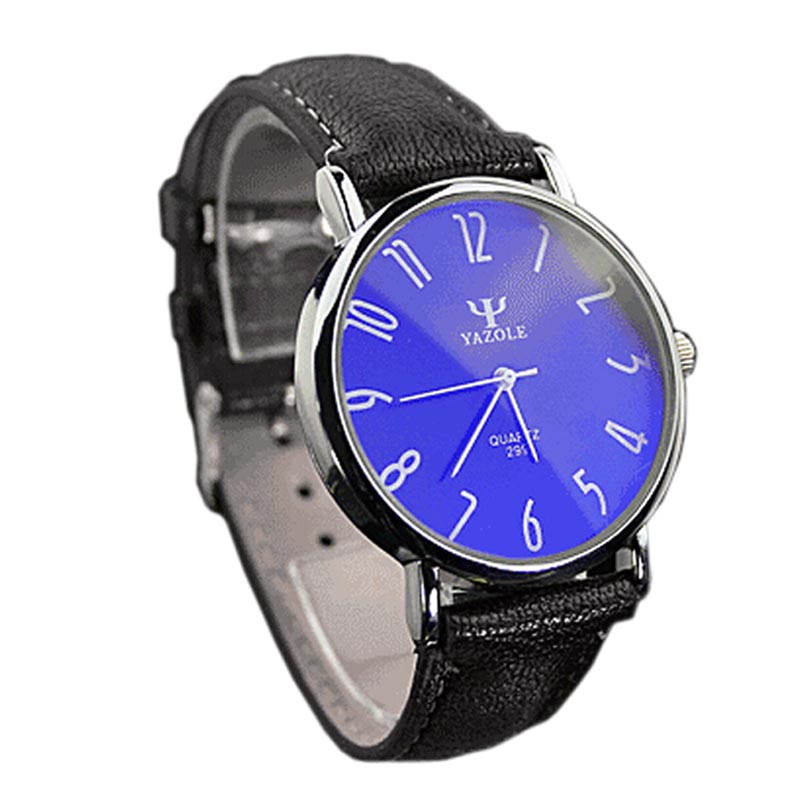 Ceasul de mana de la Yazole este o alegere perfecta ca accesoriu pentru tinute office sau casual. Ceasul iese in evidenta prin cureaua din piele ecologica neagra si prin cadranul argintiu, cu interior albastru si cifre arabe. Modelul modern il face usor de asortat si are mecanism quartz.