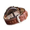 Ceasul de mana de la Weite, pentru barbati este o alegere perfecta ca accesoriu pentru tinute office sau casual. Ceasul iese in evidenta prin cureaua din piele ecologica maro si prin cadranul de 5 cm diametru, cu interior pe alb. Modelul modern il face usor de asortat si are mecanism quartz.