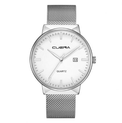 Ceasul cu bratara metalica argintie Cuena este o alegere perfecta ca accesoriu pentru tinute office sau casual.