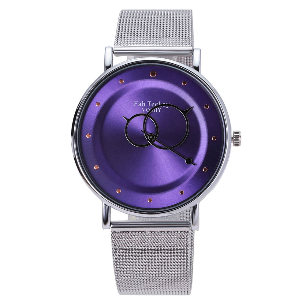 Ceasul cu bratara metalica si cadran mov este o alegere perfecta ca accesoriu, datorita designului modern si usor de asortat cu mecanism quartz. Ceasul iese in evidenta prin cadranul cu interior unic pe mov.