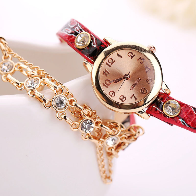 Ceas cadran auriu imprimeu deosebit rosu