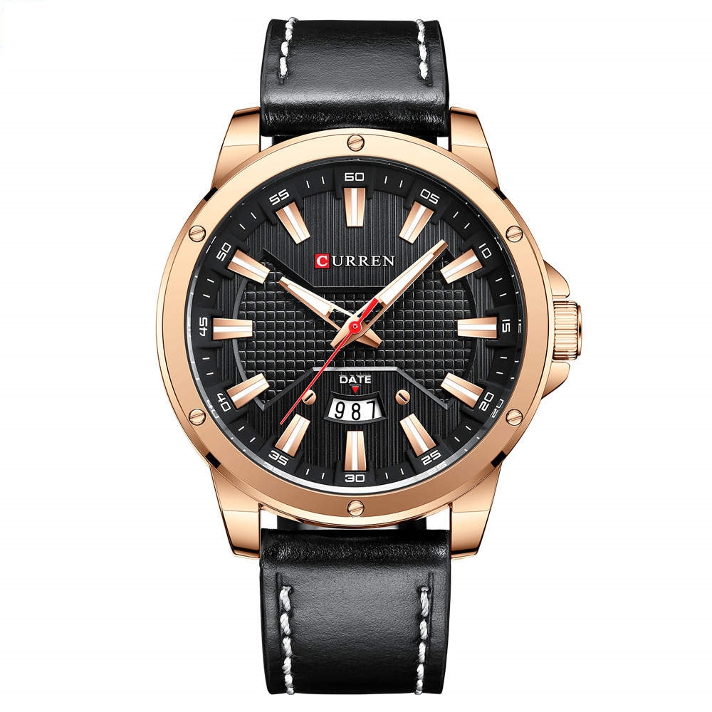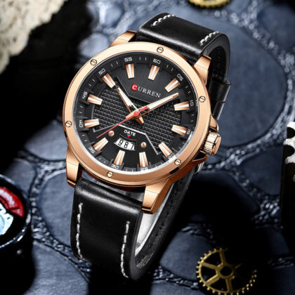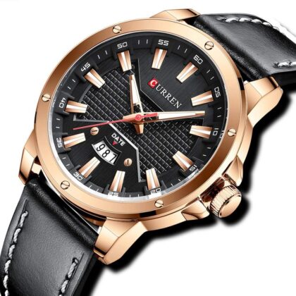 Ceas cronograf curea piele neagra Curren este o alegere perfecta ca accesoriu pentru tinute office sau casual. Ceasul iese in evidenta prin cureaua din piele ecologica neagra si prin cadranul auriu de 4,5 cm diametru.