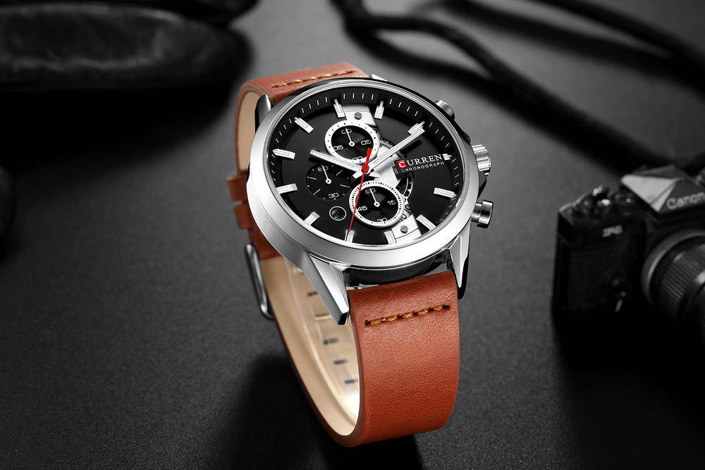 Ceas cronograf maro cadran negru Curren este o alegere perfecta ca accesoriu pentru tinute office sau casual. Ceasul iese in evidenta prin cureaua din piele ecologica maro si prin cadranul de 4,5 cm diametru. Modelul modern il face usor de asortat.