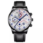 Curea neagră din piele ecologica oferă un contrast plăcut și aduce o notă de eleganță și versatilitate ceasului. Această culoare este cunoscută pentru adaptabilitatea sa la o varietate de ocazii, fiind perfectă atât pentru un aspect casual, cât și pentru unul mai formal.