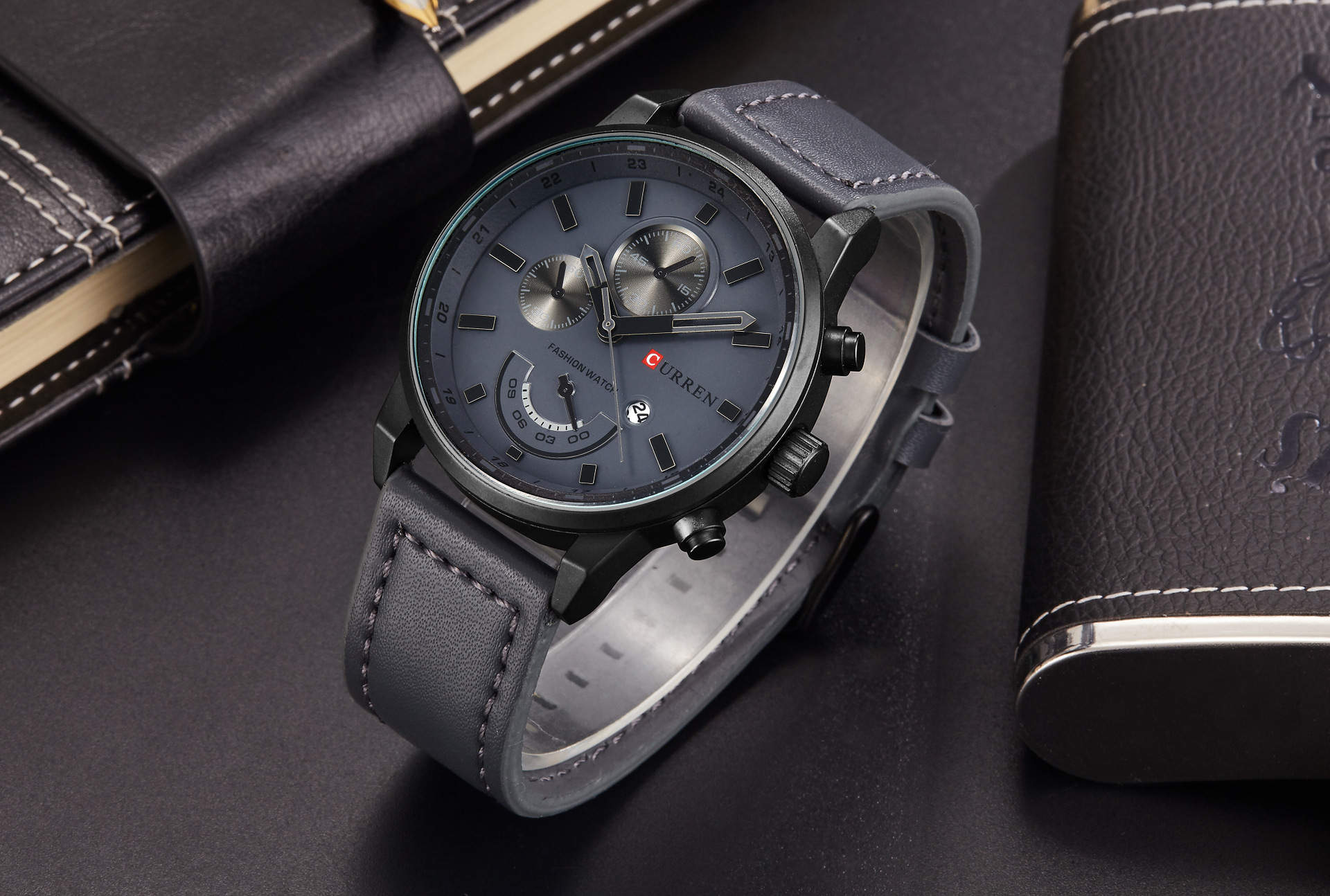 Ceas curea piele gri antracit Curren este o alegere perfecta ca accesoriu pentru tinute office sau casual. Modelul modern il face usor de asortat.