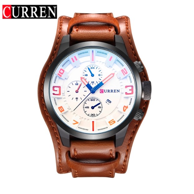 Ceasul de barbati de la Curren este o alegere perfecta ca accesoriu, datorita designului modern si usor de asortat cu mecanism quartz. Ceasul iese in evidenta prin cureaua din piele maro si prin cadranul generos cu interior unic pe alb cu data.