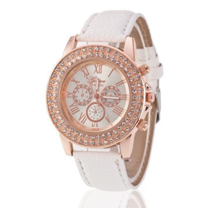 Ceas dama alb cristale Geneva
