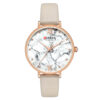 Acest ceas de dama, de culoare bej, cu cadran model marmura este nu doar un indicator al timpului, ci si o bijuterie eleganta care poate completa cu stil tinutele tale. Este o alegere de bun gust pentru femeile care apreciaza frumusetea simpla si moderna.
