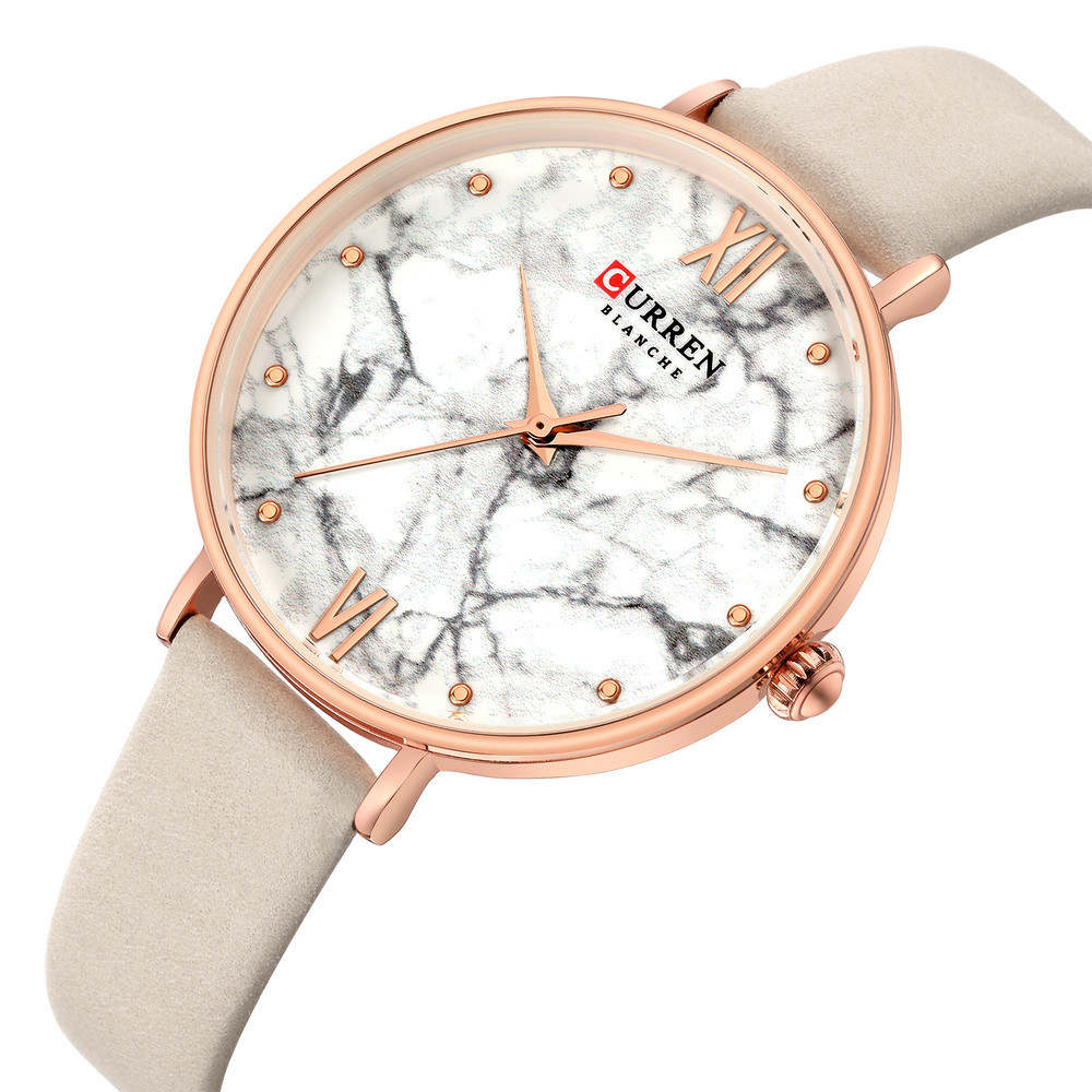 Ceas dama cadran model marmura Curren este o combinatie intre eleganta si modernitate. Culoarea bej confera ceasului un aspect rafinat si versatil, potrivit pentru diverse ocazii. Este un ton neutru ce se potriveste bine cu diferite culori si stiluri vestimentare. Interiorul cadranului cu model de marmura aduce un element de modernitate.