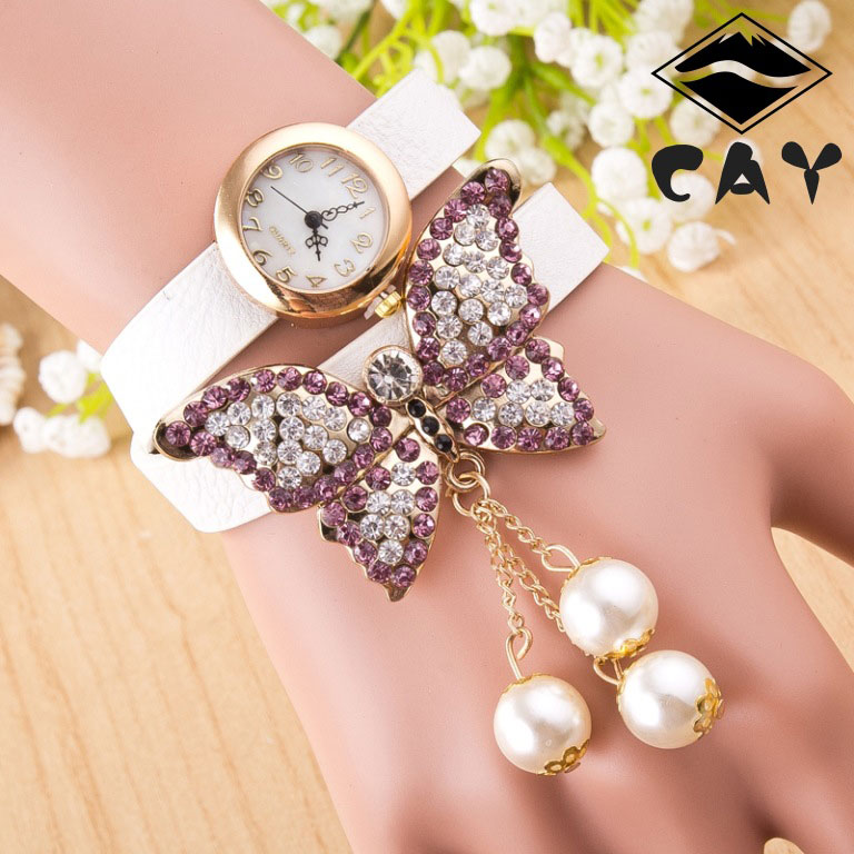 Elementul central al acestui ceas este accesoriul in forma de fluture, amplasat pe bratara. Fluturele este decorat cu cristale si perle, oferind ceasului un aspect sofisticat si feminin. Detaliile stralucitoare adauga o nota de eleganta si rafinament, transformand acest ceas intr-o bijuterie de exceptie. Este un model perfect pentru femeile care doresc sa iasa in evidenta prin accesorii indraznete si elegante.