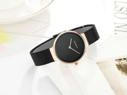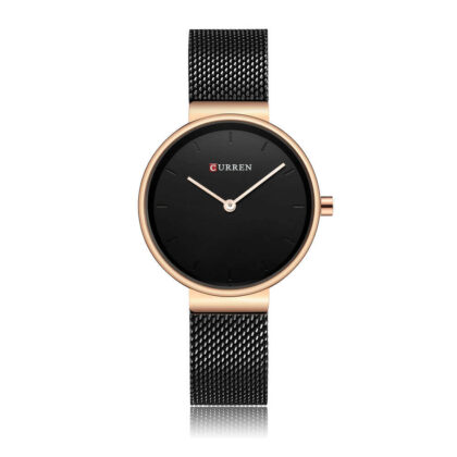 Ceas dama curea metalica neagra Curren poate fi asortat cu usurinta mai multor stiluri vestimentare. Culoarea neagra confera ceasului un aspect clasic, elegant si versatil. Este o alegere care se potriveste cu orice, de la tinute de birou la cele mai formale. Inchiderea bratarii metalice asigura stabilitate si confort in timpul purtarii.