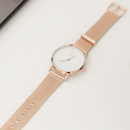 Ceasul dama elegant rose cadran alb este o alegere perfecta ca accesoriu, datorita designului modern si usor de asortat. Bratara metalica rose, cadranul auriu si interiorul alb fac acest ceas potrivit pentru a fi accesorizat cu diverse stiluri vestimentare. Cu un mecanism quartz, acest ceas ofera o afisare precisa a timpului. Este un mecanism fiabil si usor de intretinut.