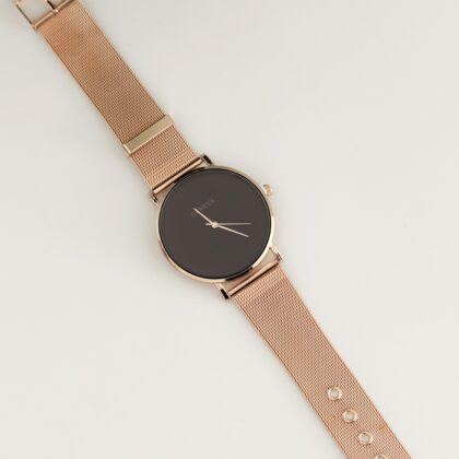 Acest ceas de dama cu bratara metalica rose, cadran auriu cu interior negru este o alegere eleganta si clasica pentru femeile care apreciaza designurile simple si rafinate. Este o piesa de accesorizare care poate completa cu stil orice tinuta.