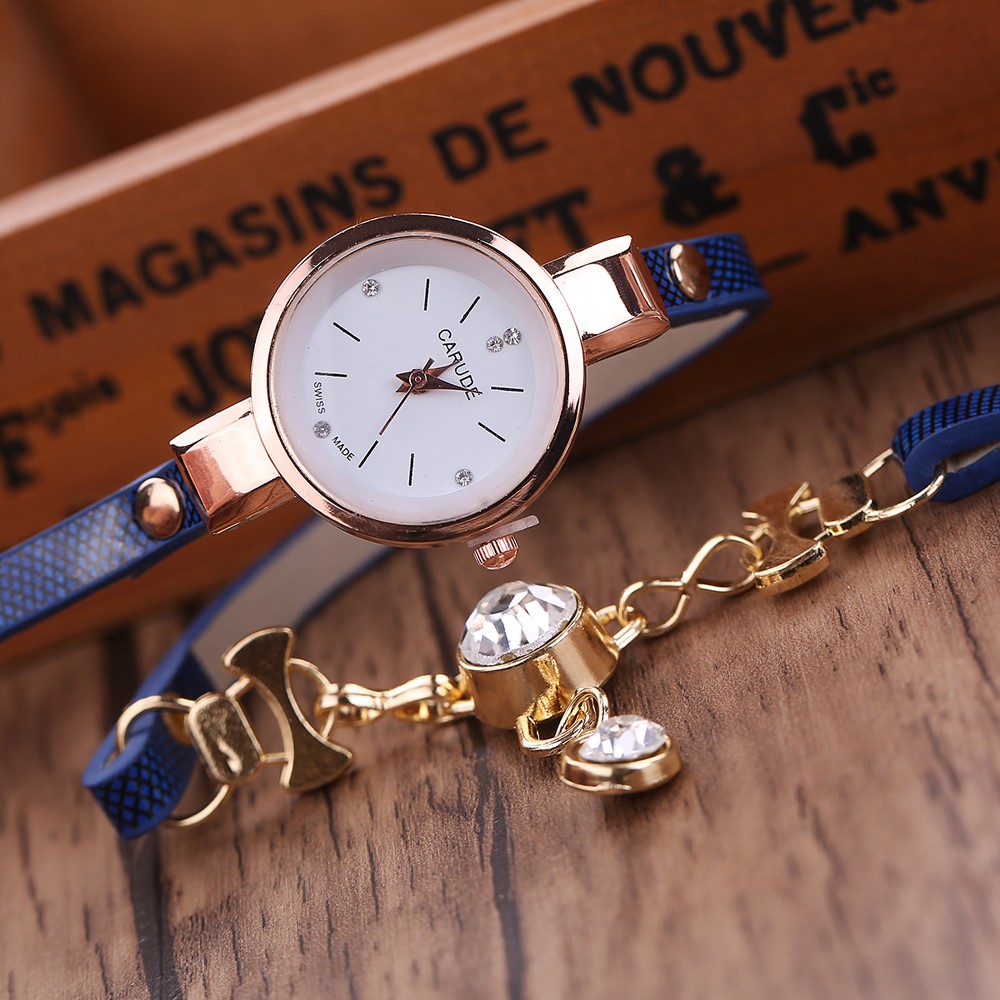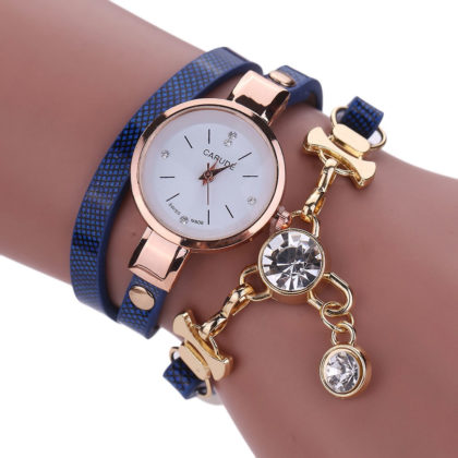 Ceas de mana cu bratara albastra si cristale Carude