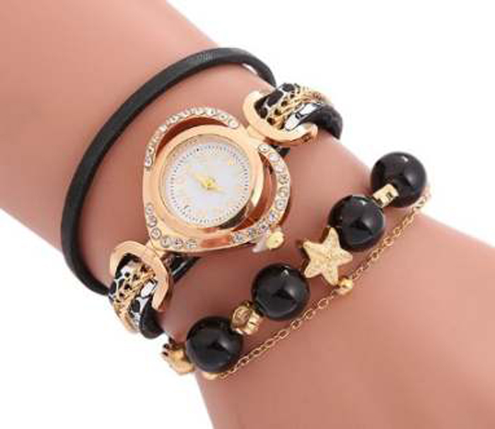 Ceas de mana negru inimioara cu stelute