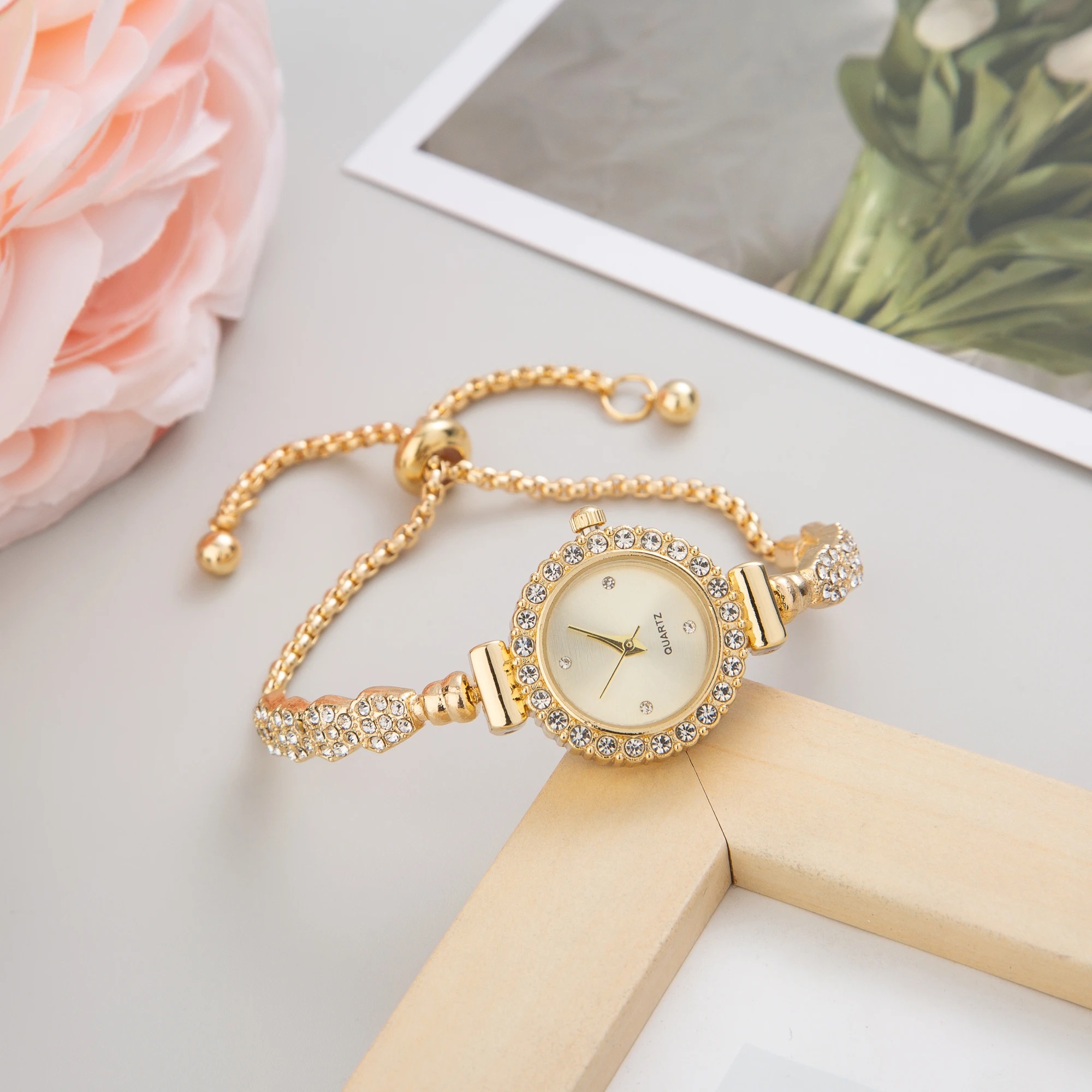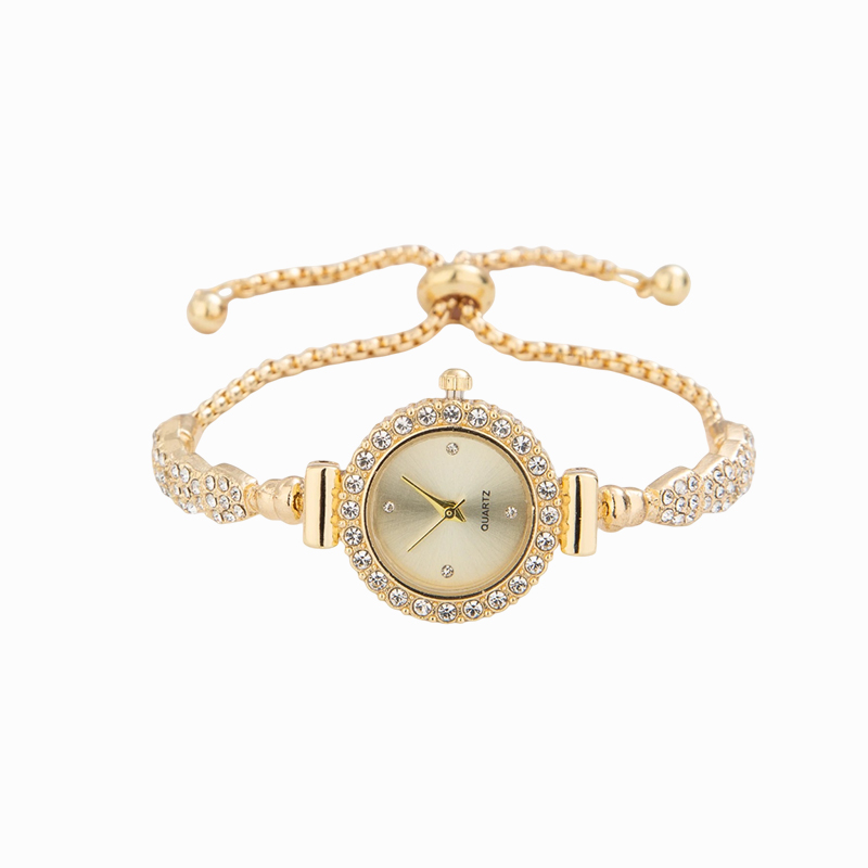 Ceasul auriu pentru dama este un accesoriu elegant și deosebit, perfect pentru a completa ținutele cu un strop de eleganță și strălucire. Cu o brățară ajustabilă și cristale integrate pe marginea cadranului, acest ceas iese în evidență. Are un cadran de dimensiuni moderate, cu cristale integrate pe marginea sa, adăugând un element strălucitor și elegant.