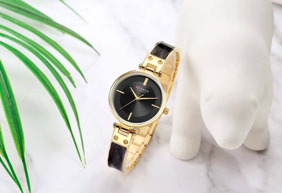 Ceasul elegant dama negru auriu de la Curren combina eleganta si modernitatea intr-un mod distinctiv, oferind un accesoriu sofisticat. Carcasa neagra din otel inoxidabil confera ceasului un aer modern si urban, in timp ce detaliile aurii aduc un plus de rafinament si caldura designului. Cadranul, elegant si simplu, are un design minimalist care completeaza frumos estetica moderna a ceasului.