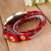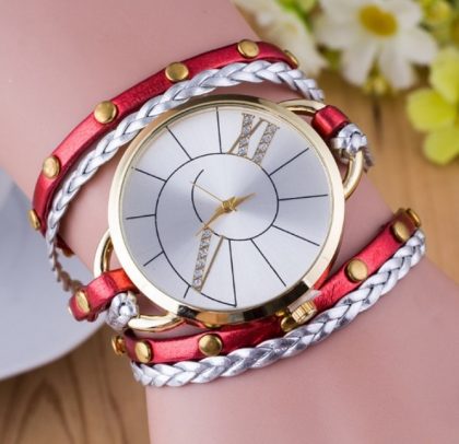 Acest ceas rosu cu brățară subțire și detalii aurii emană o eleganță simplă și modernă, potrivită pentru diferite ocazii, de la evenimente mai formale la întâlniri de zi cu zi. Este o alegere potrivită pentru persoanele care doresc un accesoriu rafinat, cu un design elegant și strălucitor.