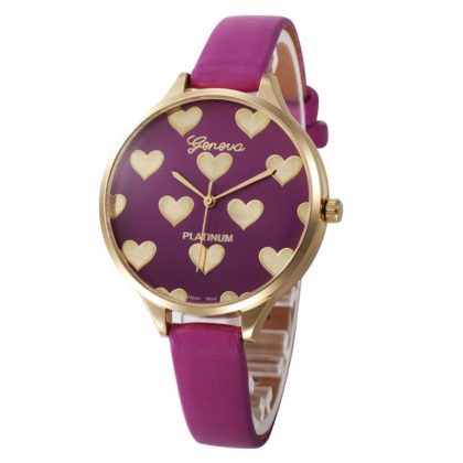 Ceasul mov este o expresie a feminitatii si a rafinamentului, oferind o combinatie de culori si detalii care aduc un plus de eleganta oricarei tinute. Bratara de culoare mov este realizata din piele ecologica, un material confortabil, asigurand purtarea placuta pe durata intregii zile. Cadranul ceasului, de culoare aurie, aduce o nota de stralucire si lux. Interiorul cadranului este decorat cu inimioare aurii, oferind ceasului un element ludic si romantic.