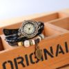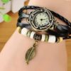 Ceasul negru cu frunzulita este elegant și are un farmec aparte. Curelusele de culoare neagra adaugă o notă clasică, potrivindu-se cu diverse stiluri vestimentare. Un detaliu remarcabil este prezența elementelor decorative pe una dintre curele, aducând o notă distinctivă și personală ceasului.