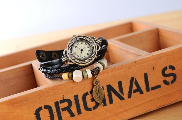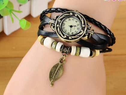 Ceas Vintage cu Brățară Împletită și Farmec Natural