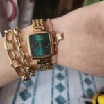 Ceasul Olevs cadran patrat verde strălucește sub razele soarelui, adăugând un plus de glam eleganței tale. Cu fiecare privire la acest ceas, te vei simți inspirată să strălucești și să-ți asumi puterea propriei tale frumuseți interioare. Cu fiecare ticăit, vei purta cu tine nu doar un accesoriu, ci și o poveste a propriei tale stiluri și pasiuni.