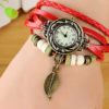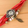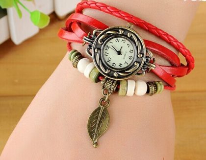 Ceasul rosu cu frunzulita este elegant și are un farmec aparte. Curelusele de culoare rosie adaugă o notă clasică, potrivindu-se cu diverse stiluri vestimentare. Un detaliu remarcabil este prezența elementelor decorative pe una dintre curele, aducând o notă distinctivă și personală ceasului.