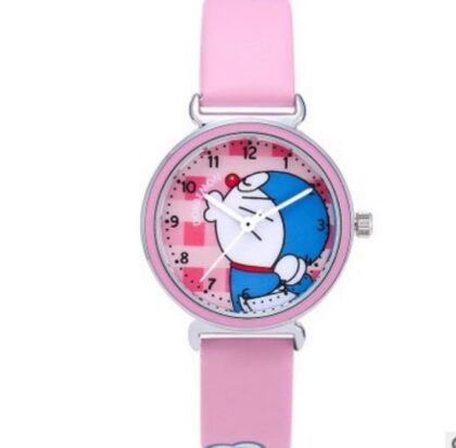 Ceas roz cu animatii, cu cadran din sticla si curea din piele ecologica. Ceas pentru copii, cu design vesel, nuante deschise si diferite animatii pe cadran. Forma cadran rotunda, cu cifre arabe usor de citit.