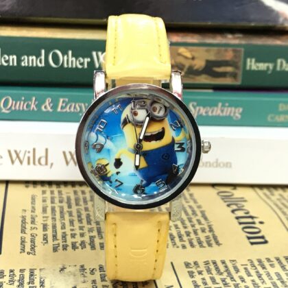 Ceas vesel copii cu cadran din sticla si curea din piele ecologica. Ceas pentru copii, cu design vesel, nuante deschise si figurine din desenele animate favorite. Forma cadran rotunda, cu cifre arabe usor de citit.