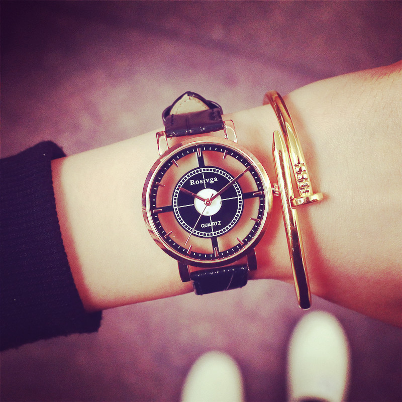 Ceasurile de cuplu cu mecanism deosebit Rosigva sunt un cadou perfect pentru indragostiti. Bratara este confectionata din piele ecologica. Contrastul dintre ceasul negru și cel alb adaugă o eleganță deosebită setului. Acest contrast simbolizează complementaritatea și armonia în cuplu.