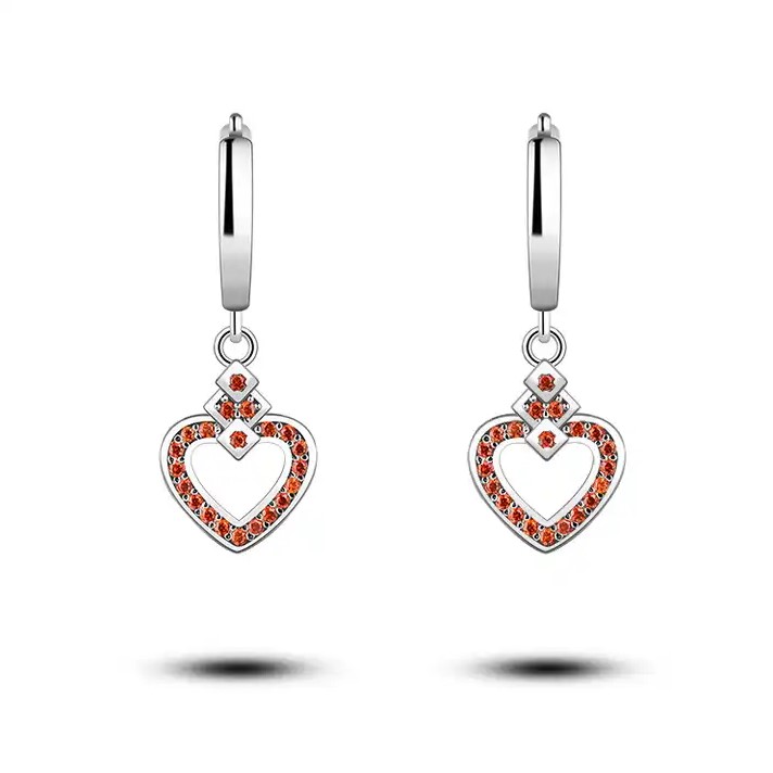 Cercei Argint 925 Inimioare Cu Cristale orange